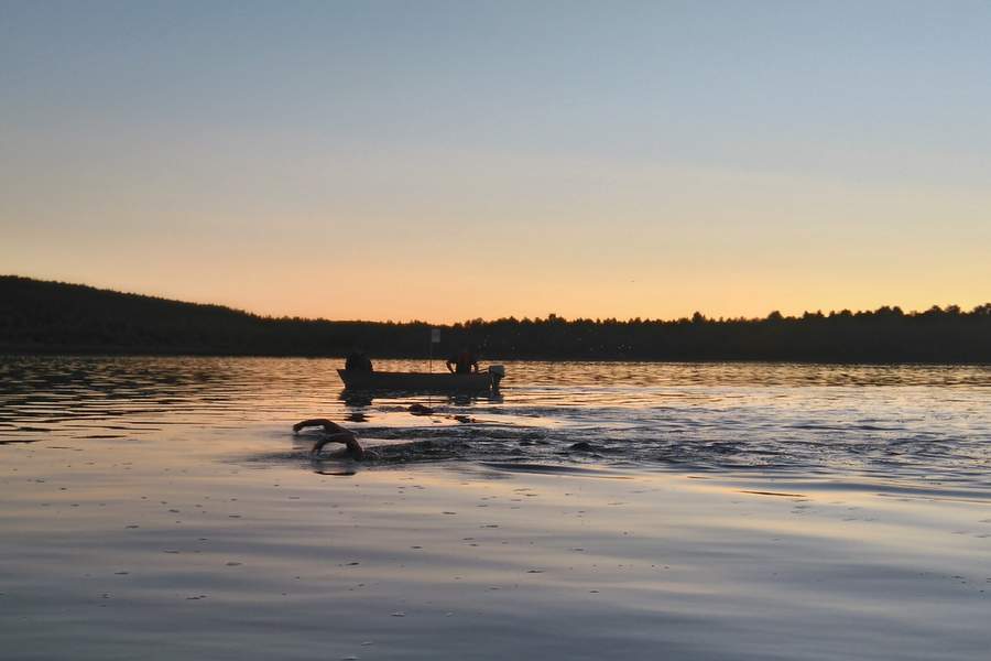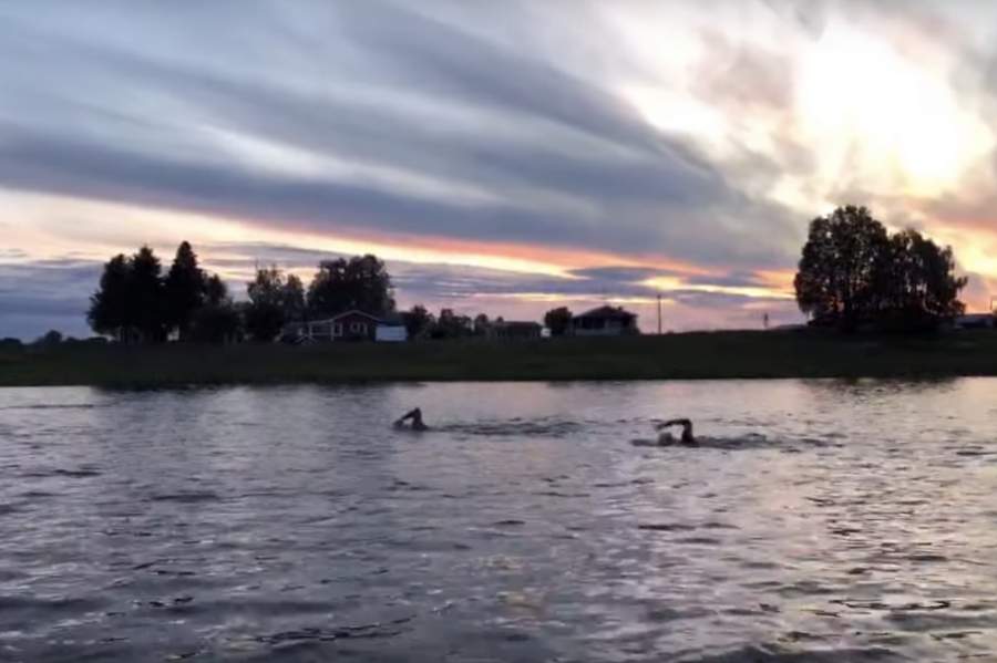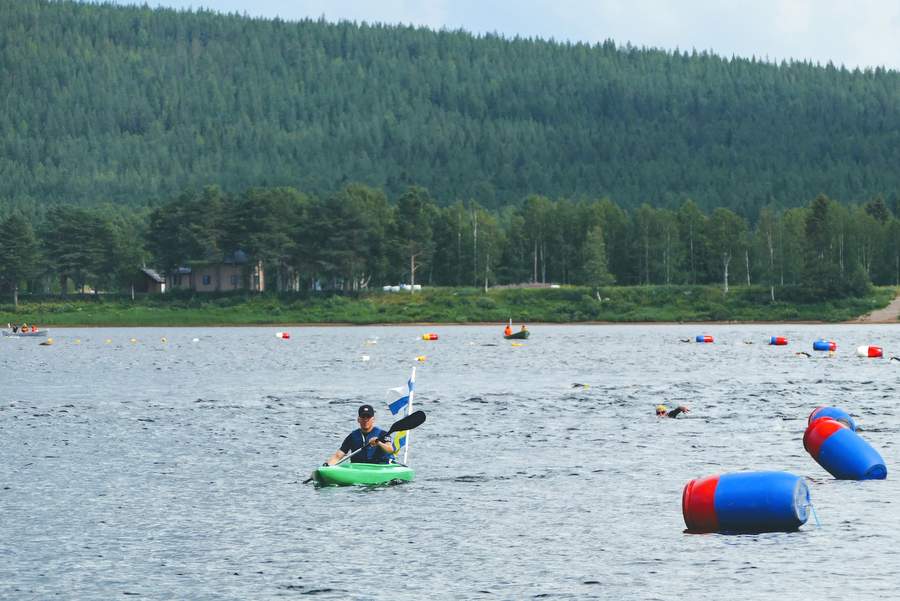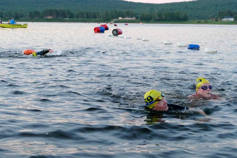 Swim the Arctic Circle, an open water swimming competition, is settled in the Torne River. To guarantee the safety of all contestants there will be canoe riders and rowers in escort boats close by the contestants at all times throughout the swimming distance. The swimming is held along out-marked swimming lanes down the river.